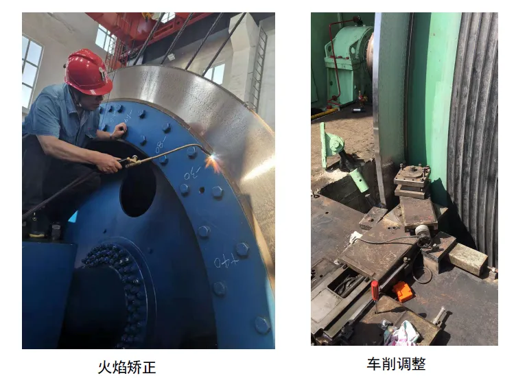 △ 輪體開焊。輪體在生產(chǎn)制造中,全部焊縫很難做到強度絕 對相同,在長期的運行中,會造成zui薄弱的環(huán)節(jié)首先疲勞,焊縫開裂,出現(xiàn)異響。這種情況可以通過磁粉或著色探傷進行檢查,確定位置進行補焊修復(fù)。