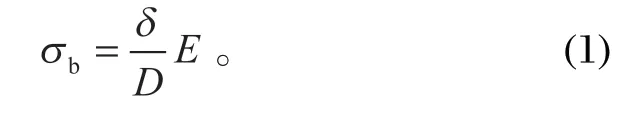張家銘研究了纏繞式提升機鋼絲繩的振動和繩鼓力學(xué)特性。假設(shè)沒有進(jìn)行捻制的鋼絲繩直徑為 δ,鋼絲繩在直徑為 D 的摩擦輪 (天輪) 上彎曲,此時,鋼絲繩的彎曲應(yīng)力