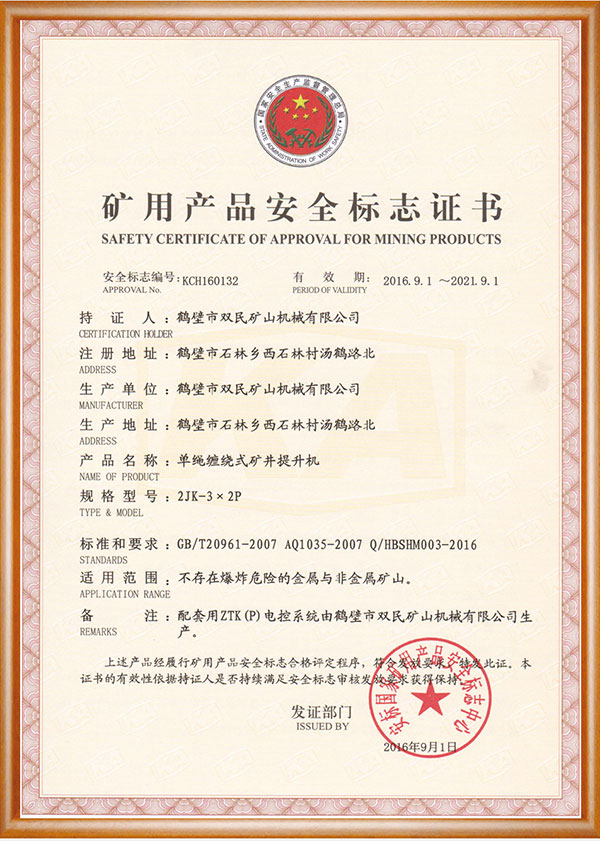 礦用產品安全標志證書